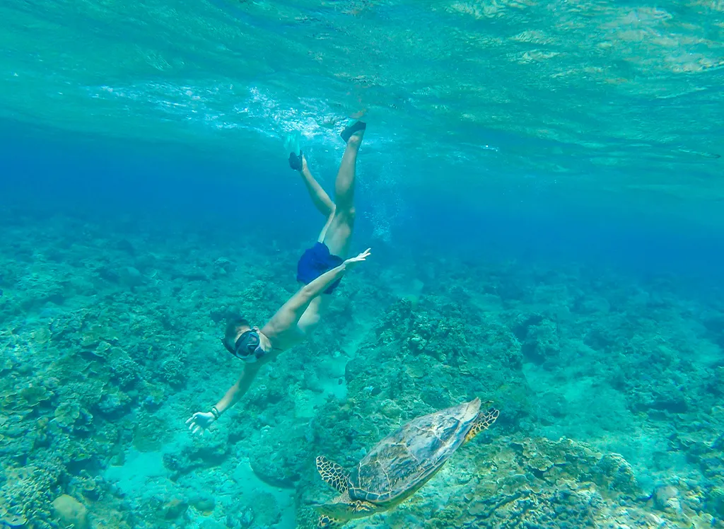 Snorkle blant undervannsstatuer og havskilpadder på Gili Meno, etterfulgt av lunsj om bord. Avslappende strandopplevelser og eventyr venter på deg!