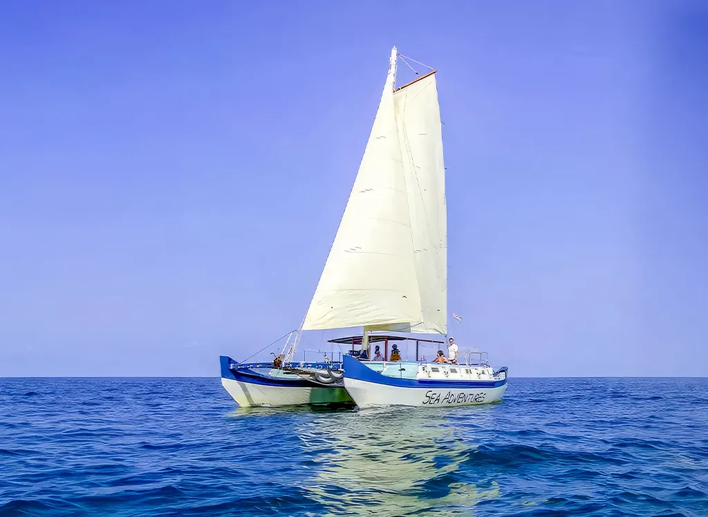 Tilbring en avslappende dag til sjøs med Sea Adventures' katamaran. Her kan du snorkle, fiske og seile i ro og fred, langt unna de travle områdene.