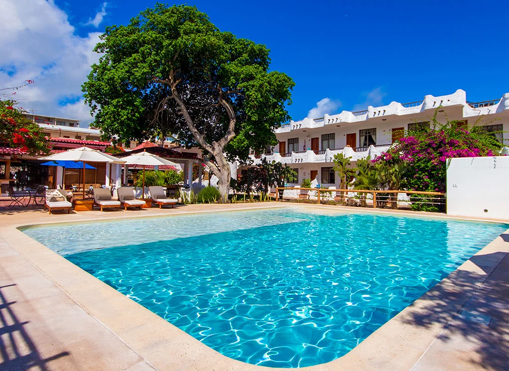 Bo sentralt på Santa Cruz Island på Hotel Fiesta: komfortable rom, restauranter, basseng & jacuzzi – perfekt utgangspunkt for Galápagos-opplevelser.