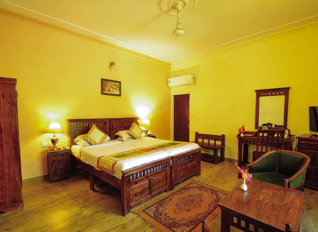 Hotel Raj Palace Resort ligger i nærheten av Ranthambore nasjonalpark, og tilbyr hytter og rom med eget bad. Hotellet har hage, bassengområde og en flerkulturell restaurant. Hotellet er en perfekt base for utflukter i nasjonalparken og avslapping.