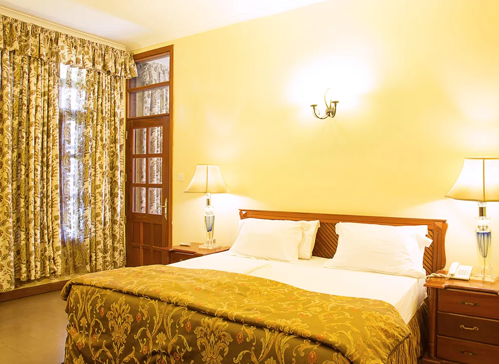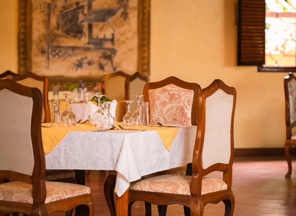 Restauranten på hotellet serverer lekre, afrikanske og internasjonale retter med råvarer fra hotellets egen kjøkkenhage.