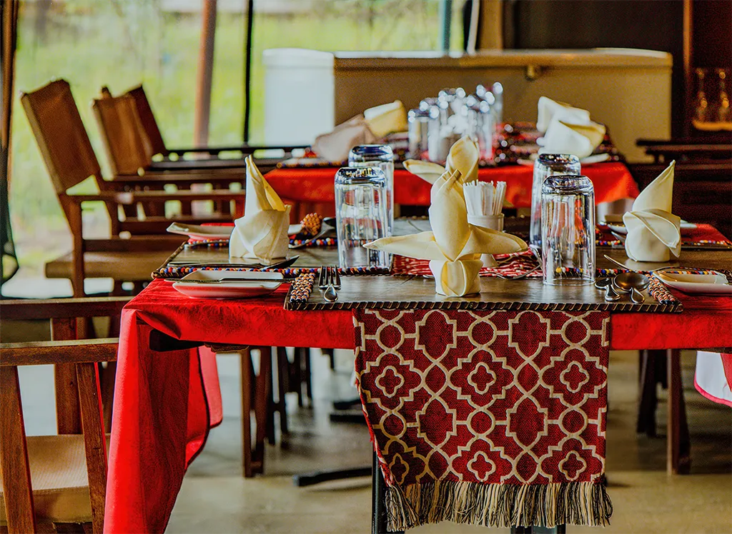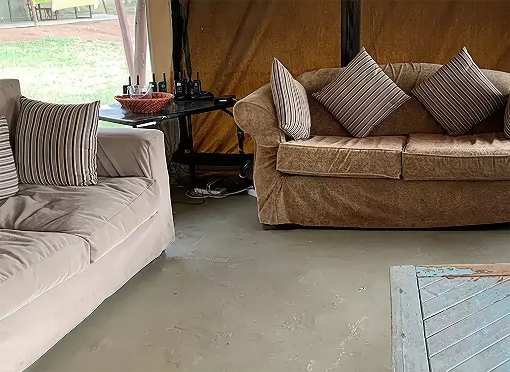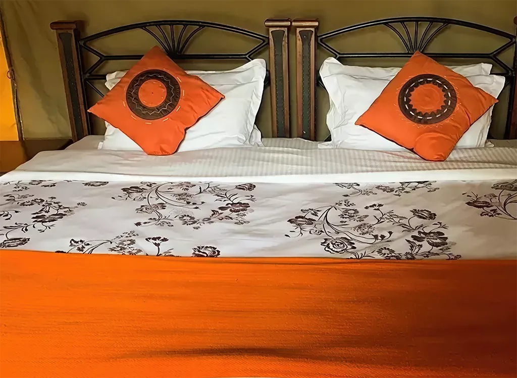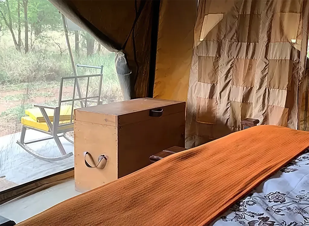 Det er 12 luksustelt, som utgjør rommene på lodgen. Selv om det er telt, er det både eget bad/toalett og rennende vann. I hvert telt er det store deilige senger, myggnett, hårføner, lite sitteområde og egen veranda/terrasse, der du kan sitte og nyte utsikten og de vakre omgivelsene.