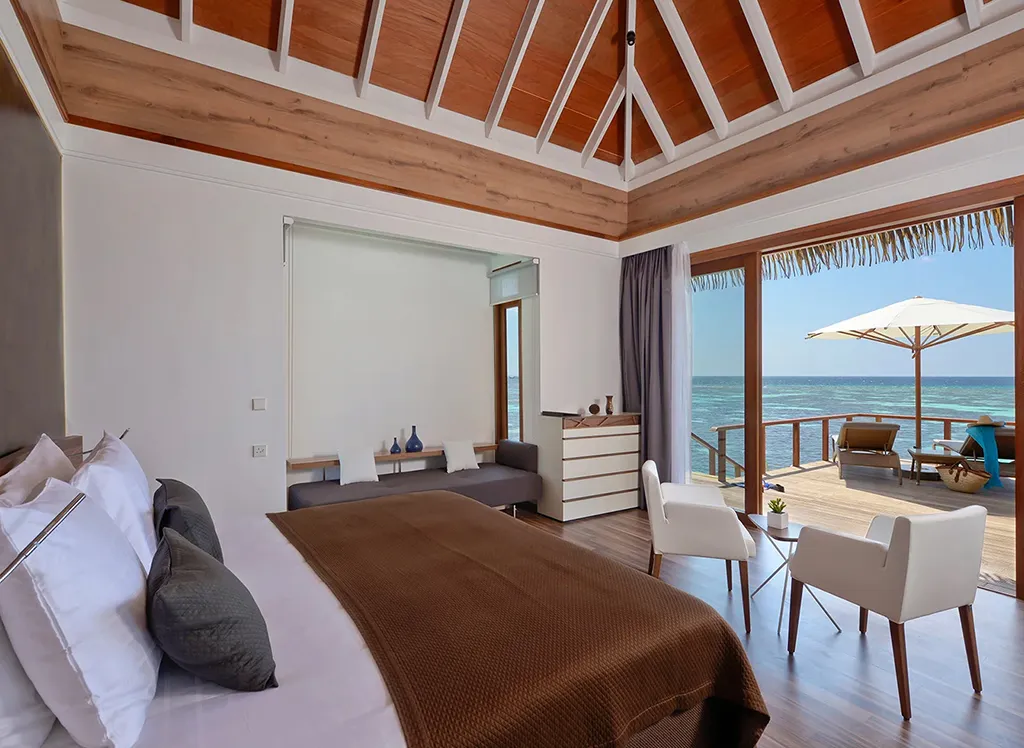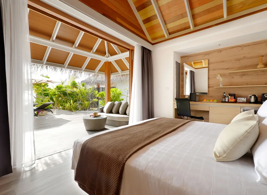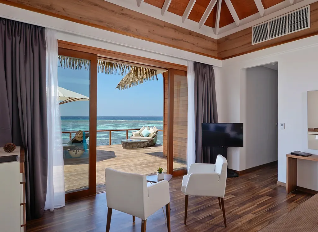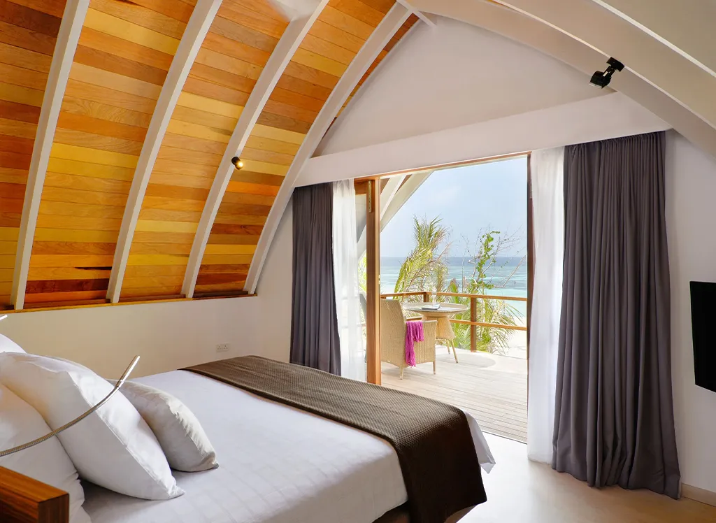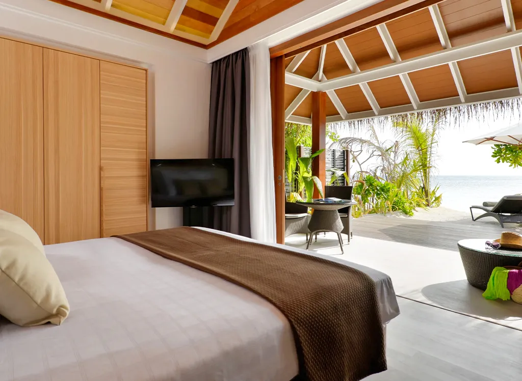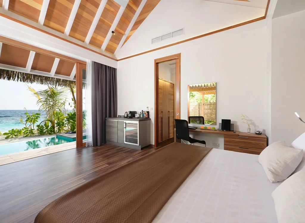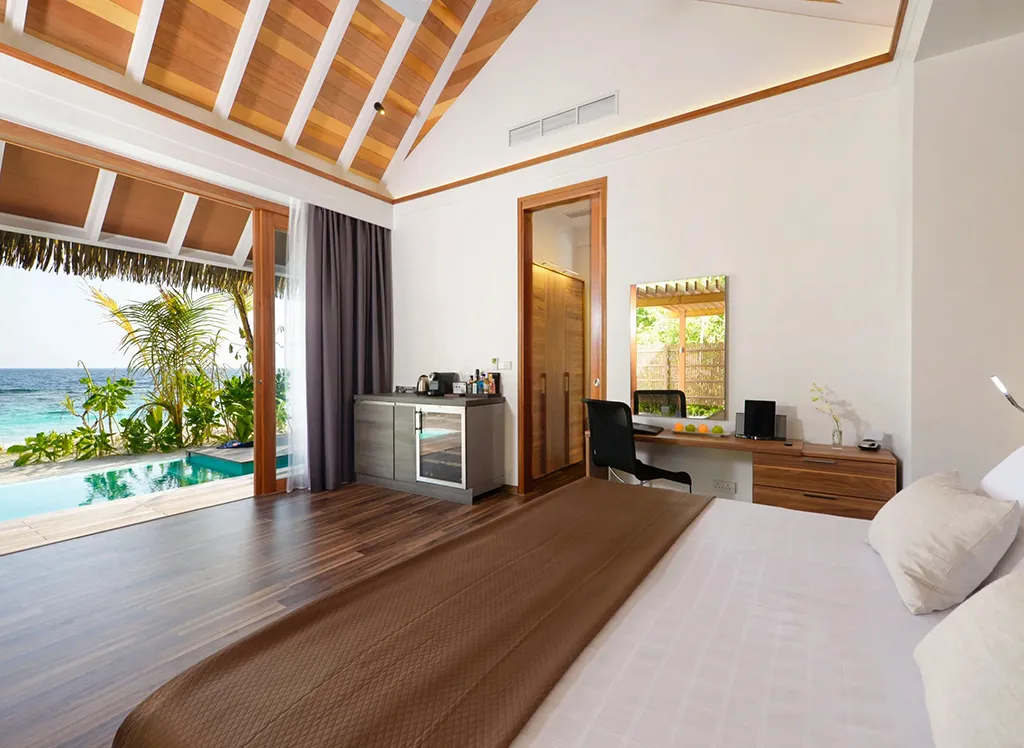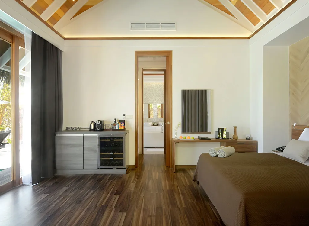 På Kandolhu Maldives bor du i en av feriestedets 30 luksuriøse villaer med dobbeltseng, klimaanlegg, minibar, elektronisk safe og badehåndklær.