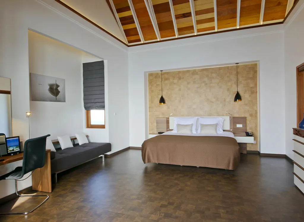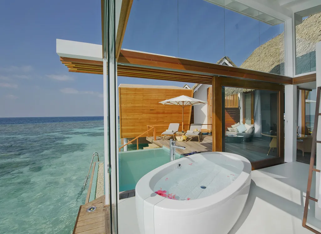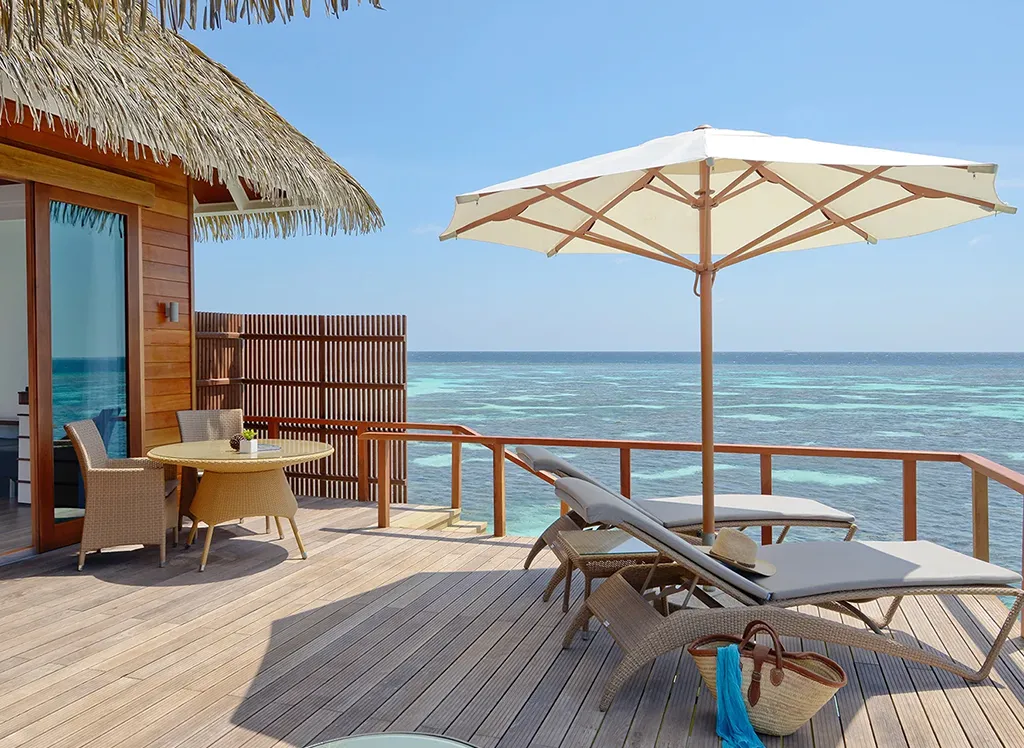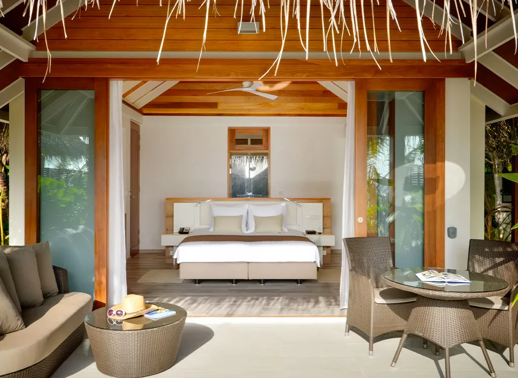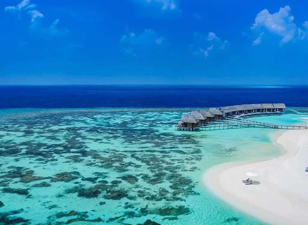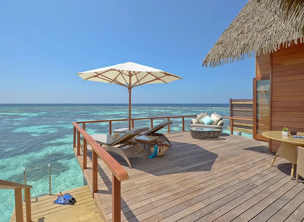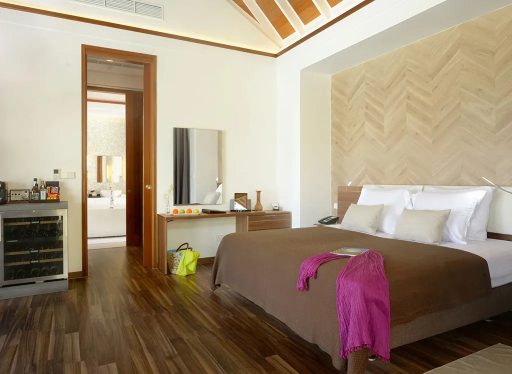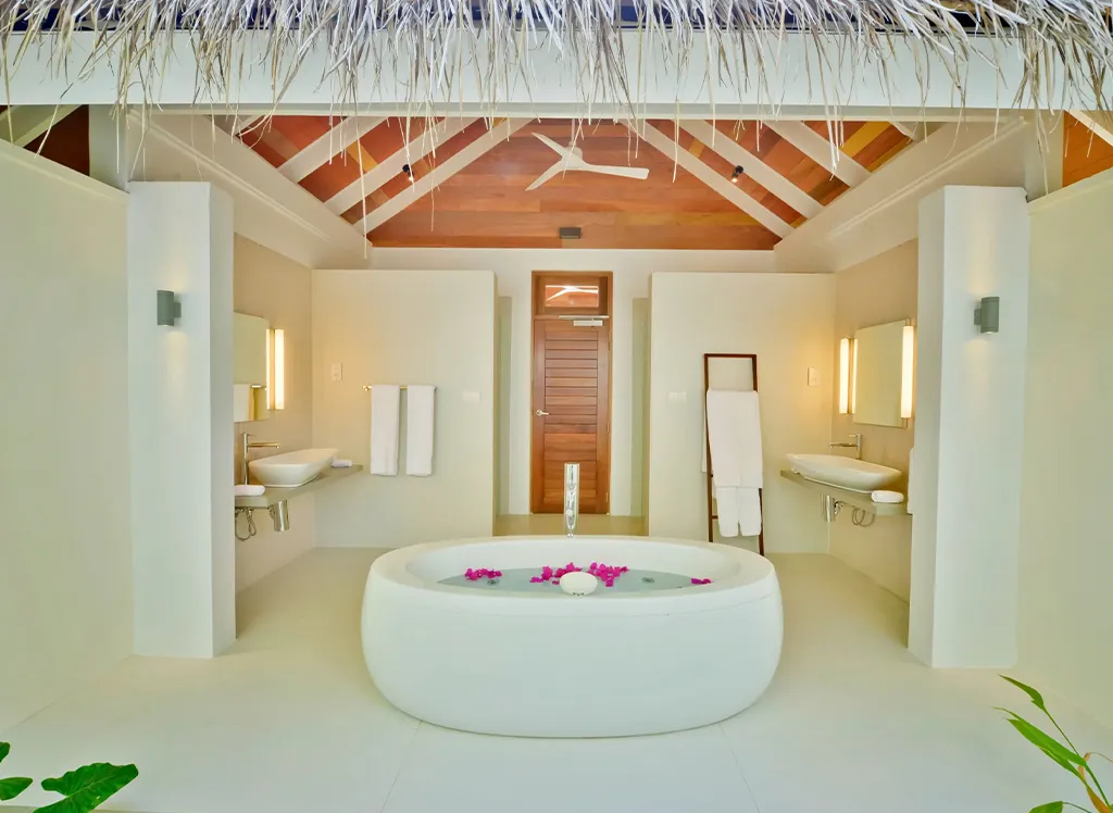 På Kandolhu Maldives bor du i en av feriestedets 30 luksuriøse villaer med dobbeltseng, klimaanlegg, minibar, elektronisk safe og badehåndklær.