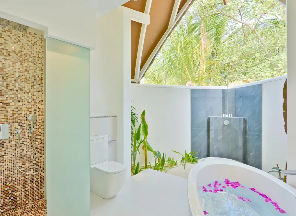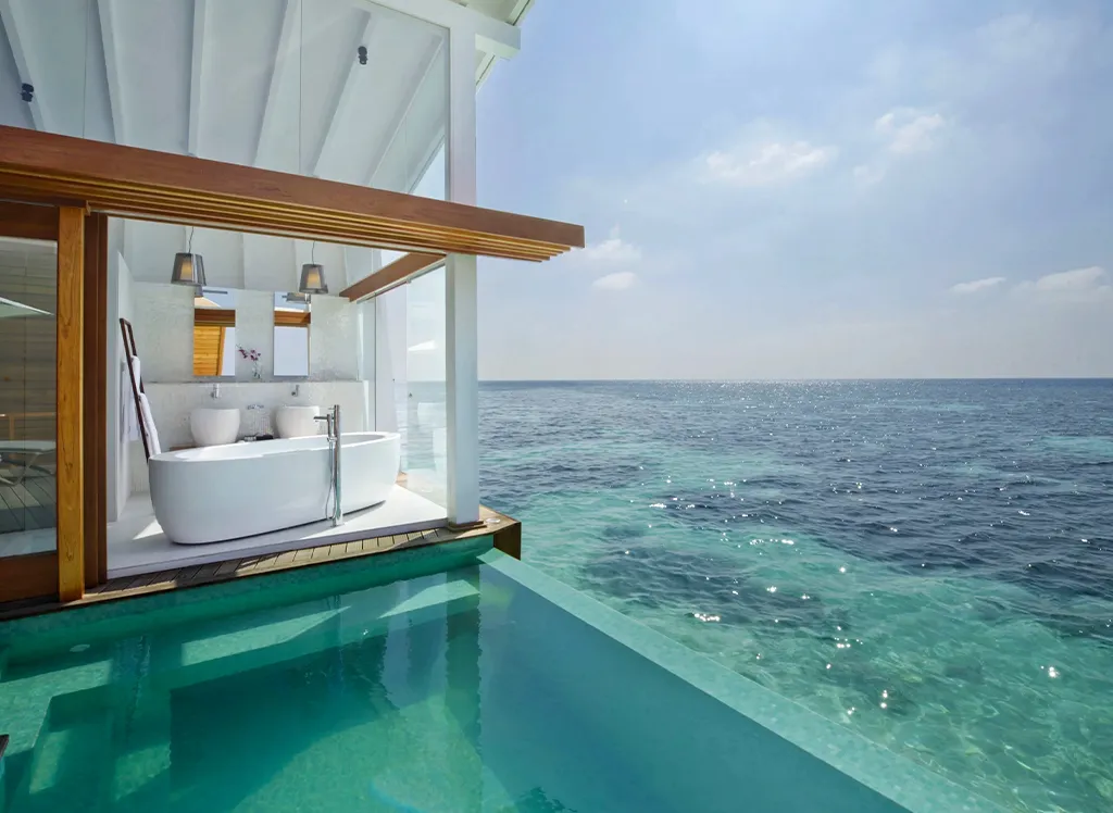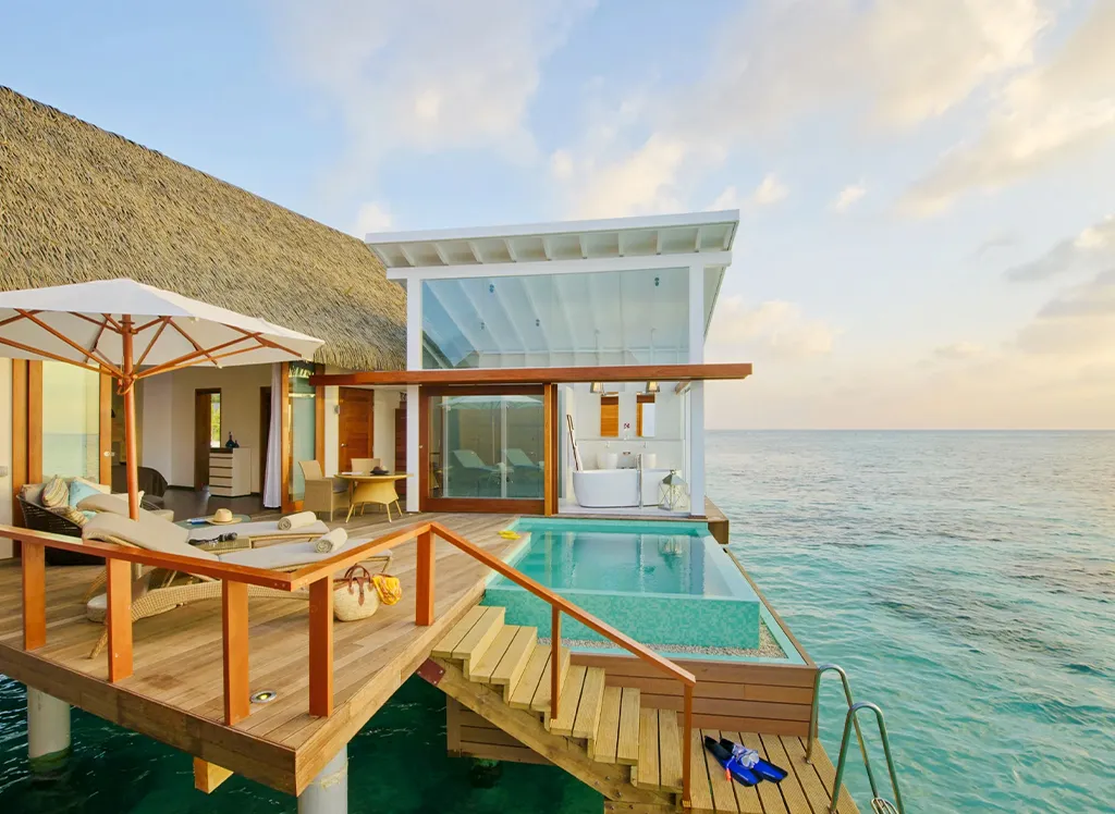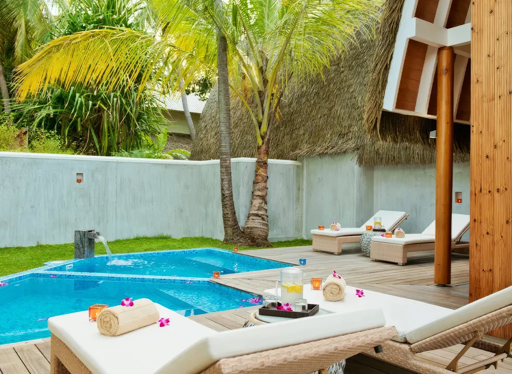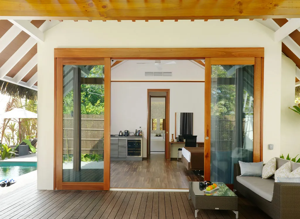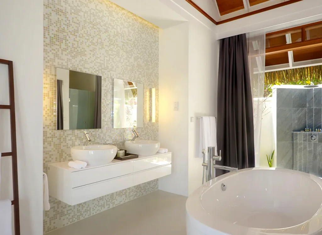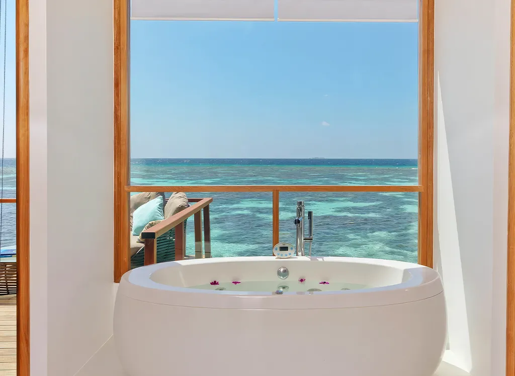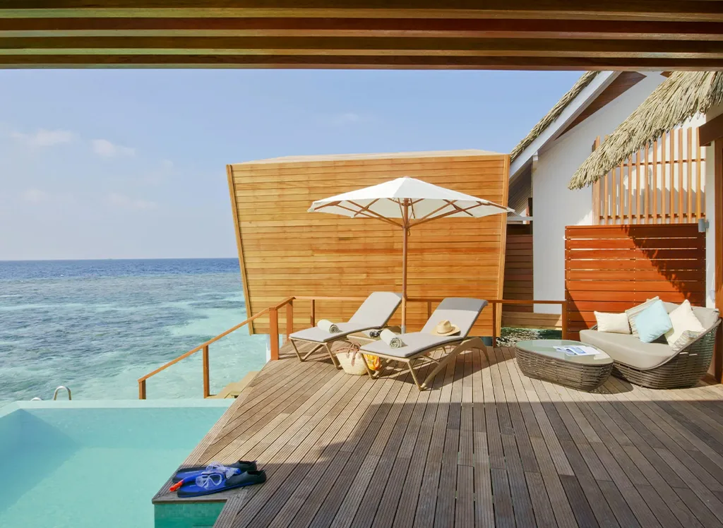 På Kandolhu Maldives bor du i en av feriestedets 30 luksuriøse villaer med dobbeltseng, klimaanlegg, minibar, elektronisk safe og badehåndklær.