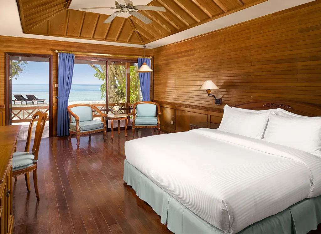På Royal Island Resort & Spa bor du i skjønne, frittstående villaer med aircondition, minibar og wi-fi. Alle villaer har dessuten en deilig terrasse, der du kan nyte utsikten over det vakre Indiske Ocean.