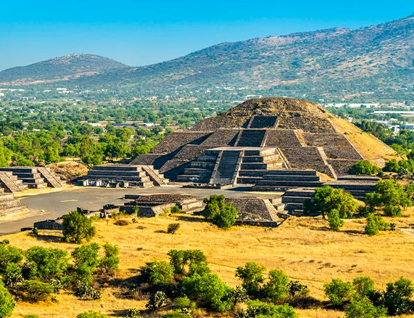 På din rundtur i det arkeologiske området opplever du de største bygningsverkene, inkludert Solpyramiden, Månepyramiden, De Dødes Allé, Templet for Quetzalcóatl – dedikert til den store guden ”Den Fjærkledde Slange” – samt Sommerfuglenes Palass.
